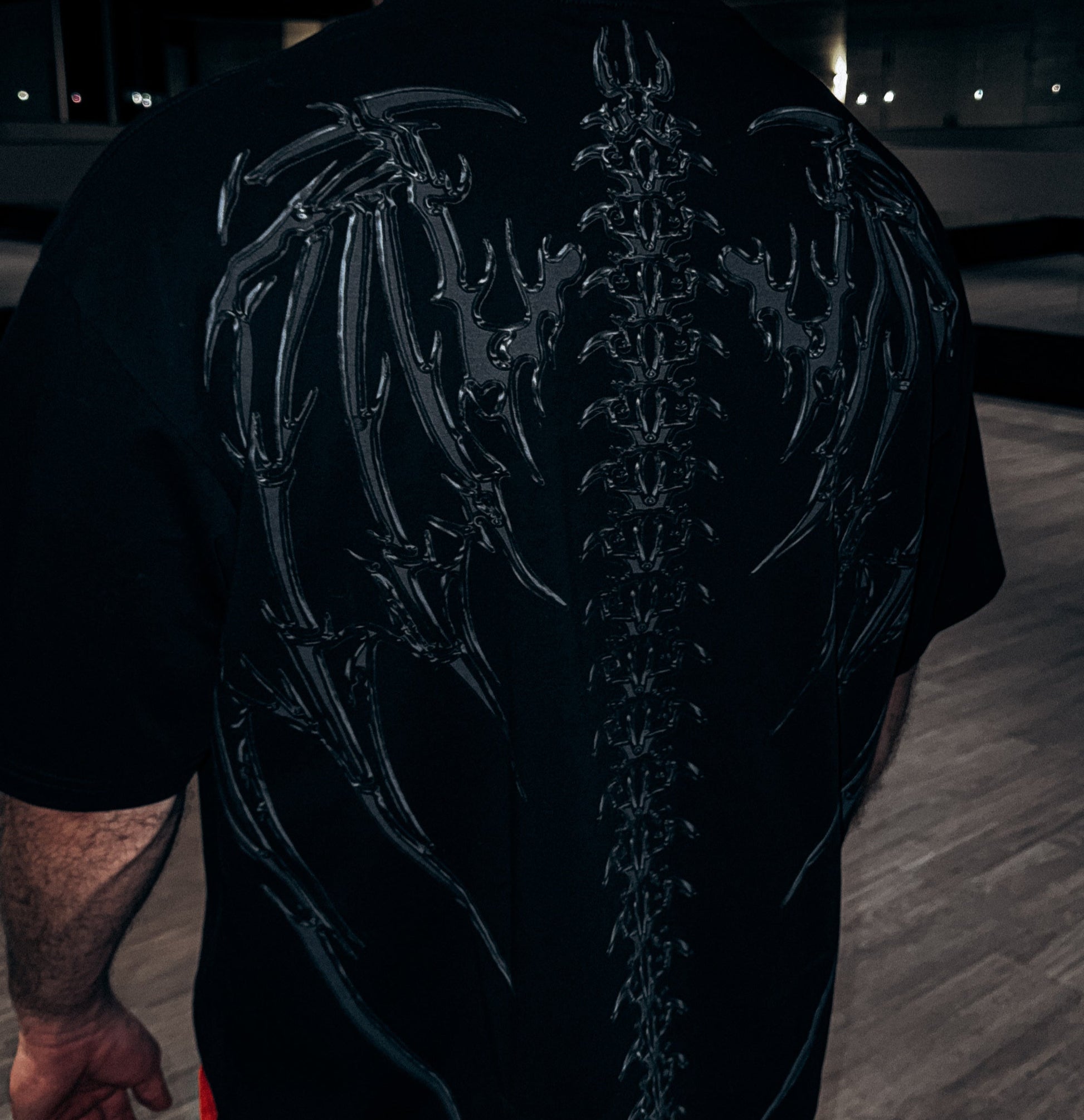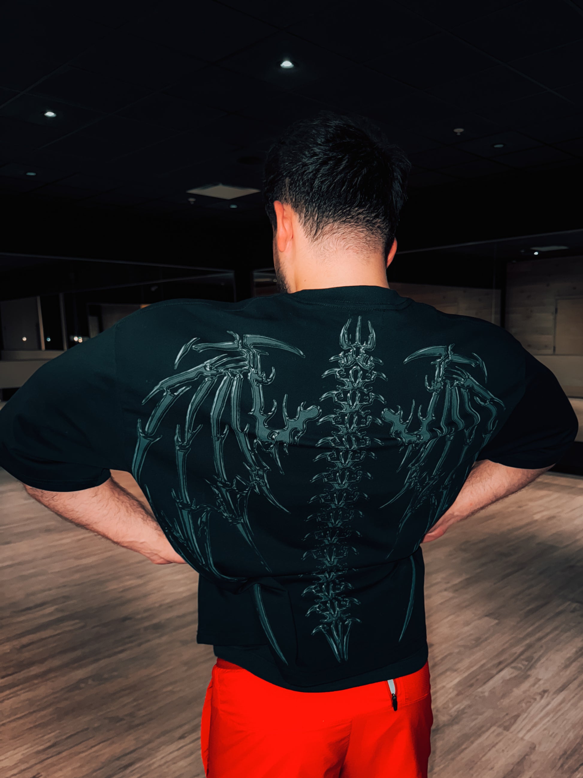 Oversized with a drop shoulder. Loose through the chest, sleeves, and body for unrestricted movement and a clean, structured drape.