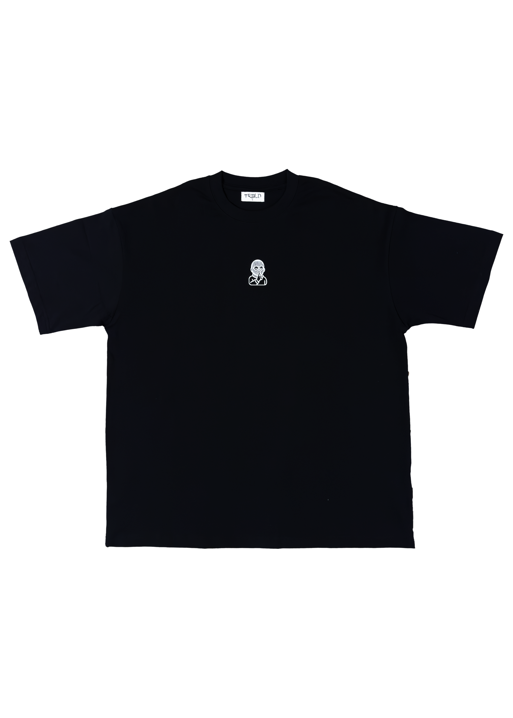 Relaxed frame with dropped shoulders and a reinforced neckline.